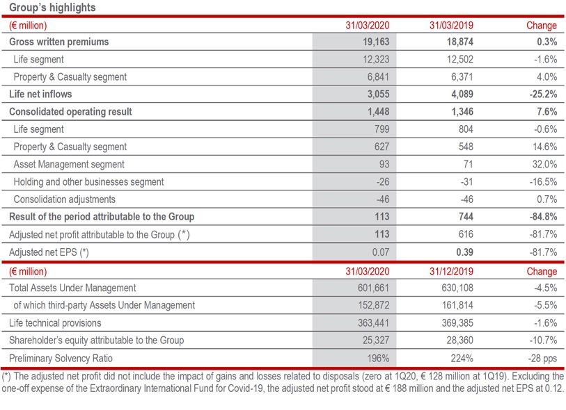The first three months of the year showed a good operating performance and confirmed the Group’s solid capital position. Net profit was affected by impairments due to the current financial markets performance as result of the global pandemic.”